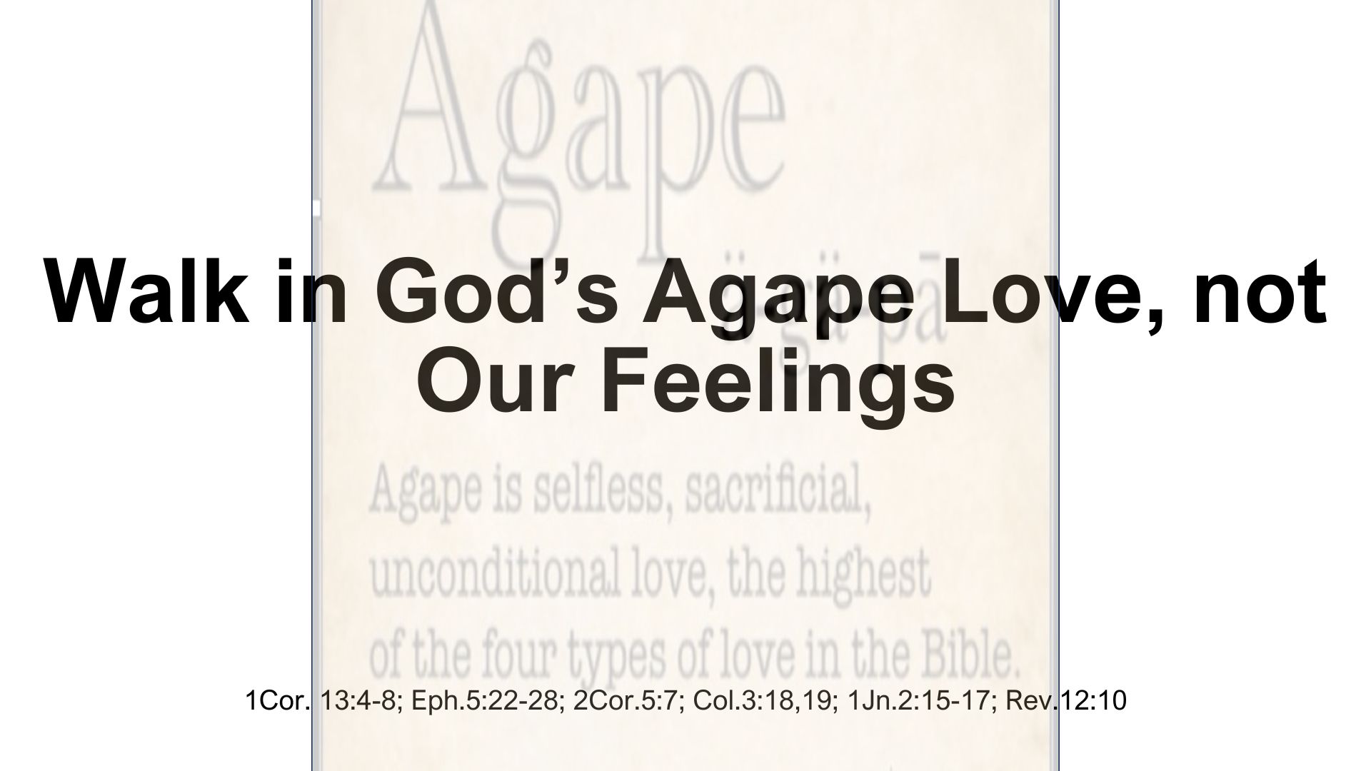 Walk in God’s Agape Love, not Our Feelings